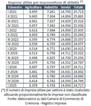 Questo dato conferma una maggiore vitalità del comparto terziario nell’ambito del tessuto economico cremonese.