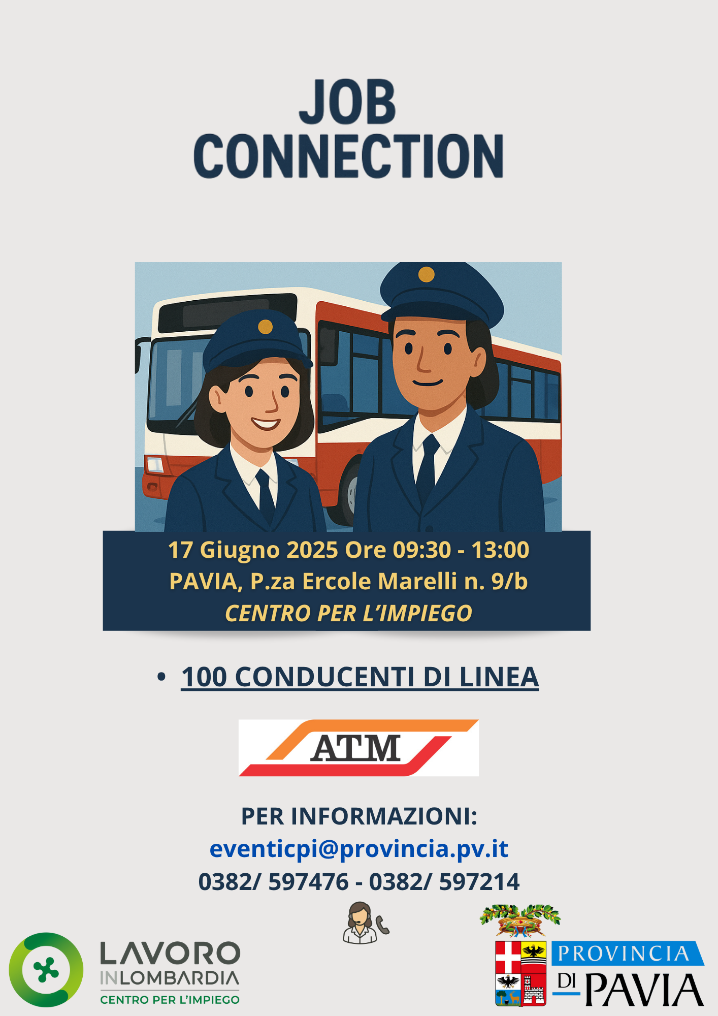 La Provincia di Pavia è lieta di annunciare una nuova edizione di "Job Connection", il Career Day promosso dai Centri per l’Impiego, un appuntamento chiave per favorire l’incontro tra domanda e offerta di lavoro nel territorio pavese. L’evento si terrà martedì 17 giugno 2025, dalle ore 9:30 alle 12:30, presso la sede del Centro per l’Impiego di Pavia, in Piazza E. Marelli n.9/B.