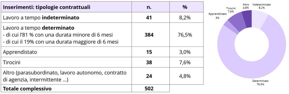 Di seguito si riportano le tipologie contrattuali in cui sono stati inseriti i candidati selezionati attraverso il servizio IDO: