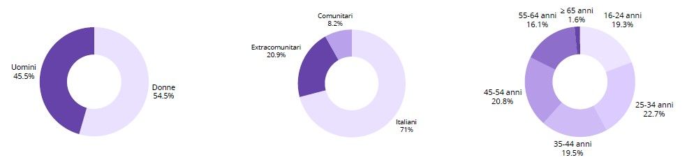 - 7.300 italiani (71%), 2.149 extracomunitari (21%) e 839 comunitari (8%)