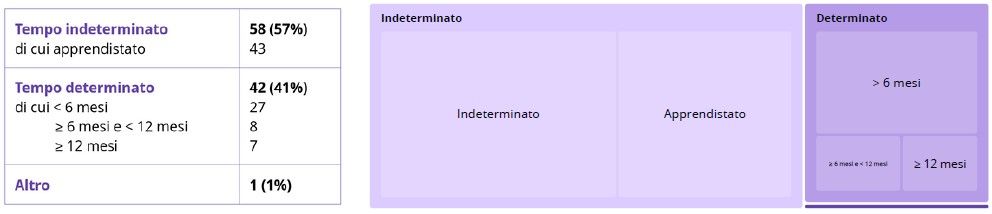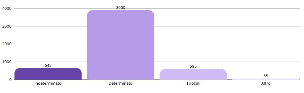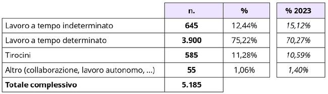Di seguito si riportano le tipologie contrattuali di assunzione al termine del tirocinio: