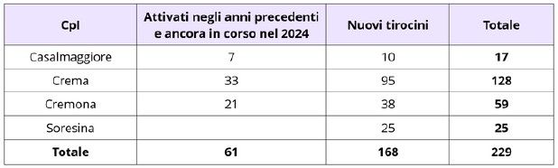 - 168 nuovi tirocini;
