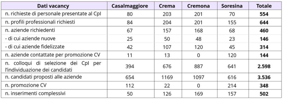 Di seguito si riportano i dati relativi all’attività svolta dagli operatori dei CpI sia in riferimento ad una specifica richiesta di personale da parte di un datore di lavoro che in riferimento all’attività di promozione di candidati ritenuti in linea con le caratteristiche di un determinato datore di lavoro anche in assenza di una sua richiesta formale di personale.