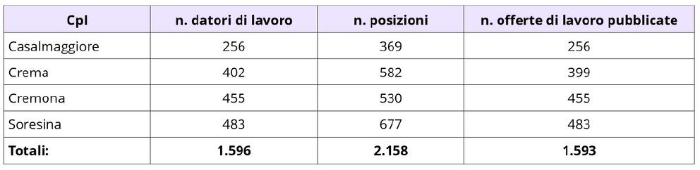 Nel corso del 2024, i Centri per l’Impiego della Provincia di Cremona hanno gestito, complessivamente, 7.552 DID – dichiarazioni di immediata disponibilità al lavoro – che costituiscono il presupposto dal quale iniziare un percorso con i lavoratori allo scopo di aumentarne il grado di occupabilità.