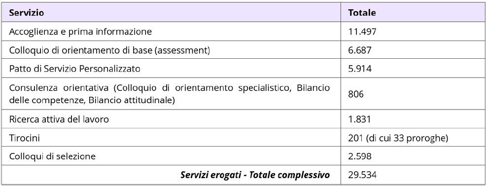 Nel corso del 2024 i CpI e il Collocamento Mirato hanno erogato i seguenti servizi:
